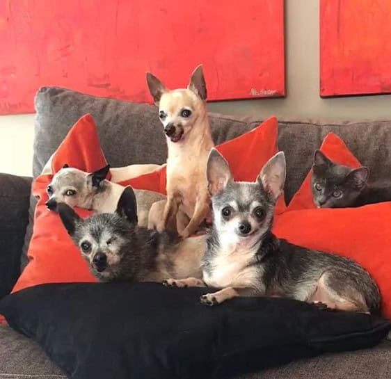 During her time at the shelter, Julie discovered three other larger Chihuahuas. She adopted all four, naming them Benito, Momo, Cholly, and Paloma.